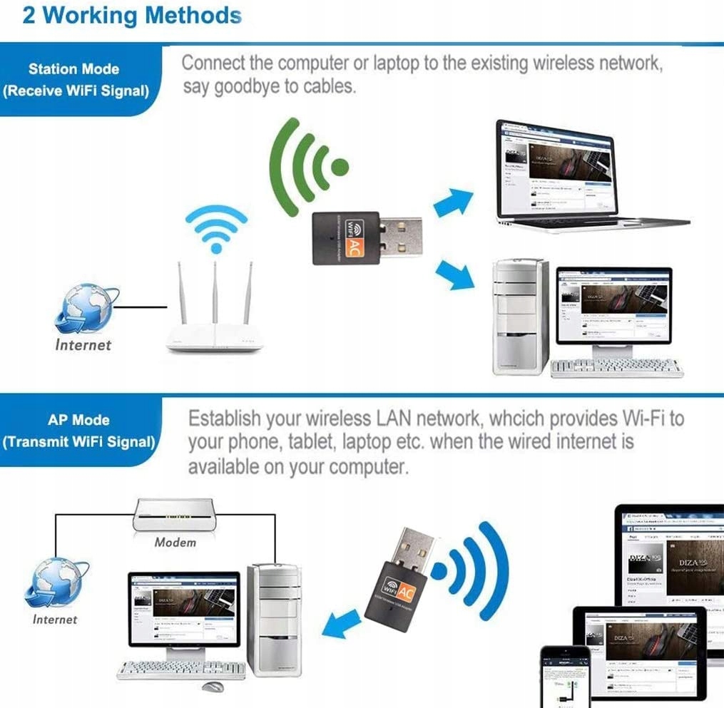 - 【Размер MINI】Инновационный мини-двухдиапазонный беспроводной адаптер, новейшая и самая эффективная технология Wi-Fi — в 3 раза быстрее, чем скорость беспроводной сети N. Двойной ремешок уменьшает помехи и улучшает соединение с более крупной беспроводной сетью.