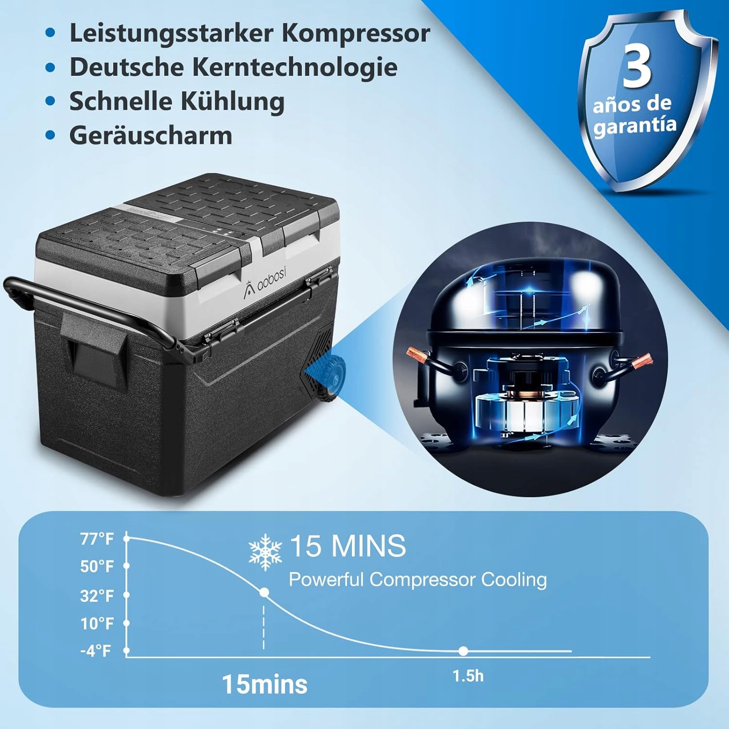 ✅ Противоскользящая и съемная ручка: электрический холодильник AAABOSI имеет противоскользящую конструкцию по всему периметру с двумя противоскользящими ножками внизу, которые идеален даже на неровных и крутых дорогах, а также на уклонах до 30 градусов. Компрессорный холодильник объемом 57 л также оснащен съемной ручкой и двумя колесами, которые облегчают транспортировку и предотвращают поломку ручки со временем.