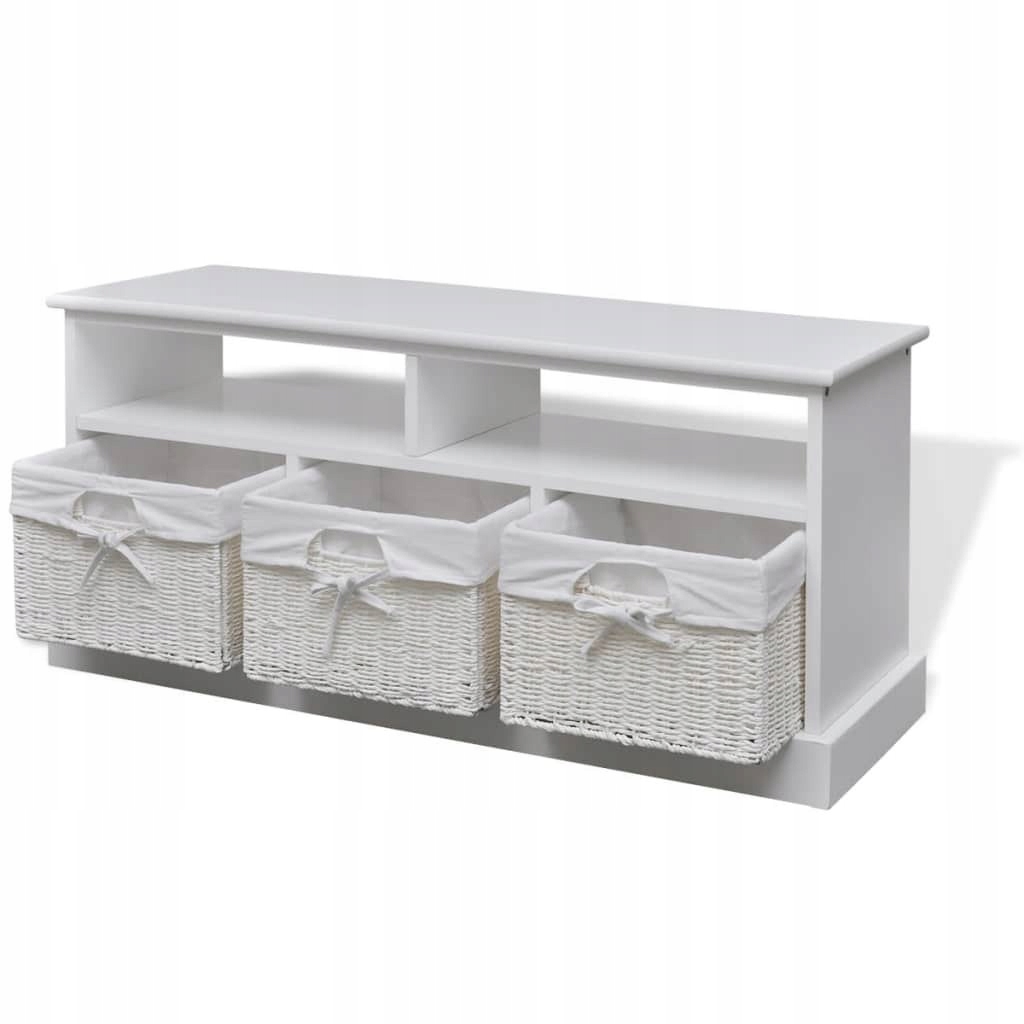 Белая скамейка с корзинами изготовлена из высококачественных материалов, в красивом романтическом стиле, станет декоративным и практичным дополнением интерьера вашего дома.