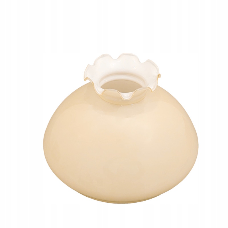 Абажур выполнен вручную из белого стекла, окрашенного в бежевый или зеленый цвет, с декоративной рюшой.