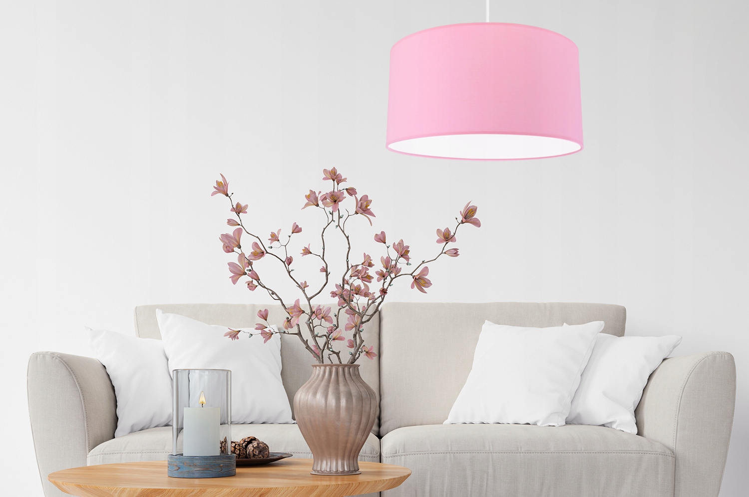 Розовый абажур диаметром 40 см для подвесных и стоячих светильников