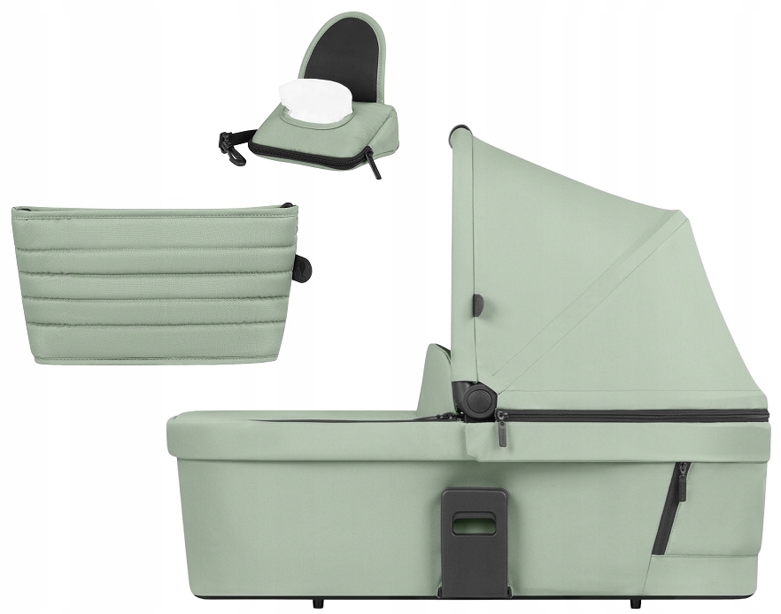 В комплект входит практичный органайзер, который можно спрятать. в передней части гондолы или вешается на ручку коляски.
