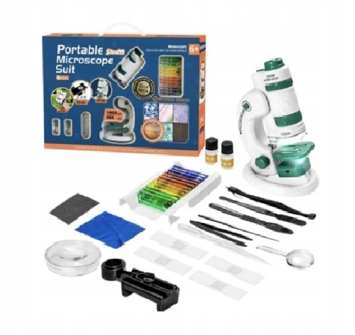 имеется различные увеличения, до 60x и 180x, что позволяет детям наблюдать за структурой листовых клеток, обнаруживает тонкую текстуру крыльев насекомых и испытывает чудеса микроскопического мира. Оснащенный зажимом адаптера мобильного телефона, который легко подключается к большинству смартфонов, позволяя делиться микроскопическими изображениями или фильмами для друзей или семьи, используя встроенное применение камеры на смартфоне.