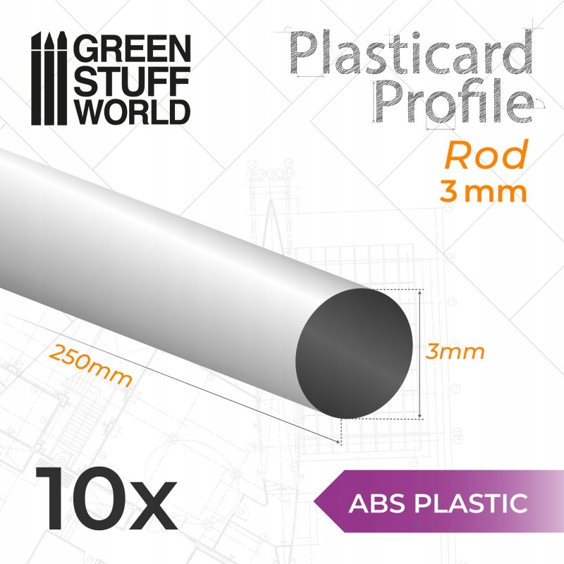 АБС-пластик - Профили СТЕРЖНИ 3мм - 10 шт.