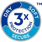 - FeelDry Advanced™ Верхний слой и распределяющий слой впитывают жидкость, сохраняя кожу сухой.
