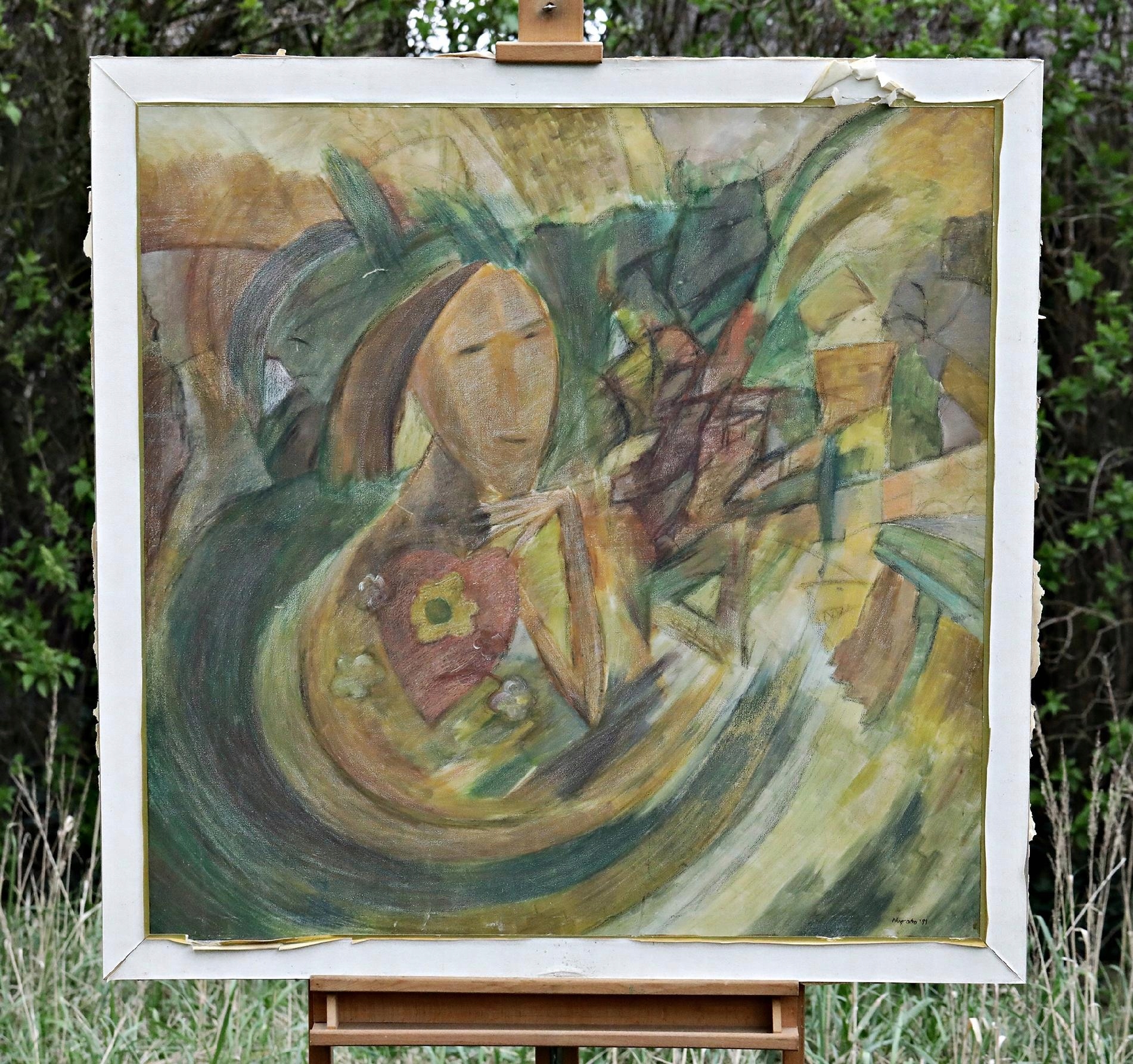 абстракция - отличная, интересная нефтяная картина из Индонезии