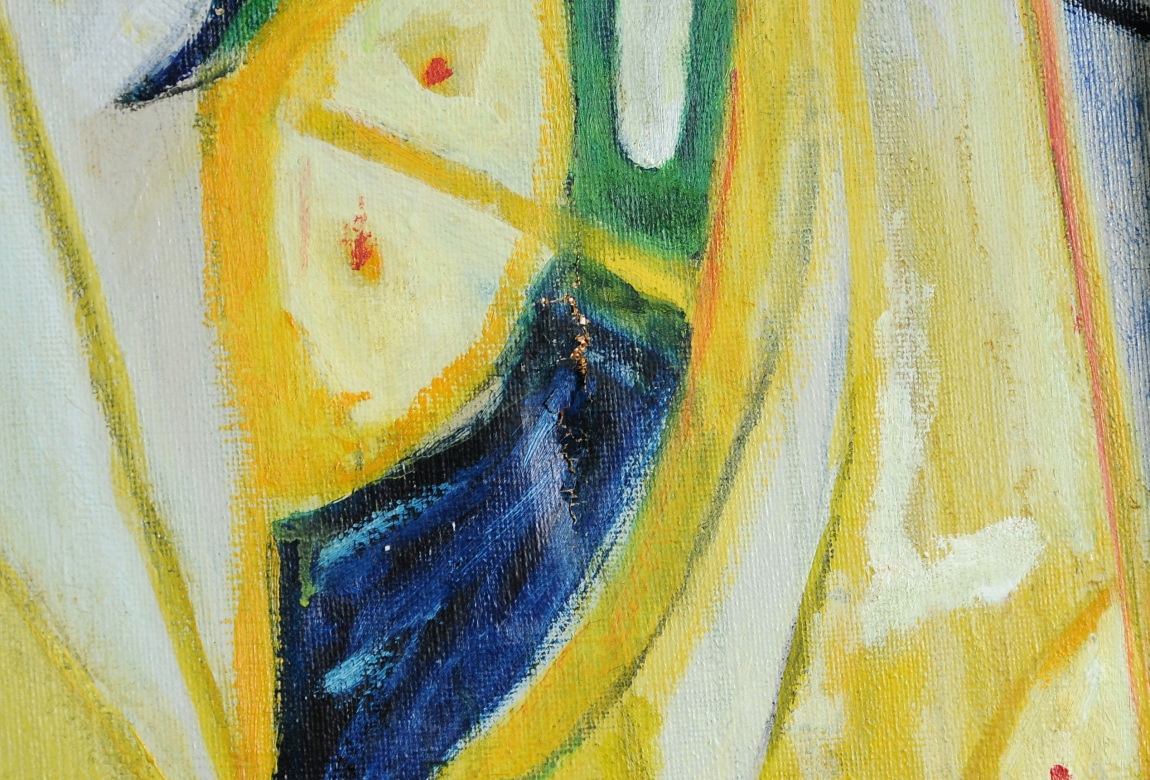 - Картина имеет значительные повреждения (надрывы) на поверхности. полотно (на фотографиях почти не видно) и несколько мелких повреждений - требует ремонта!!!
