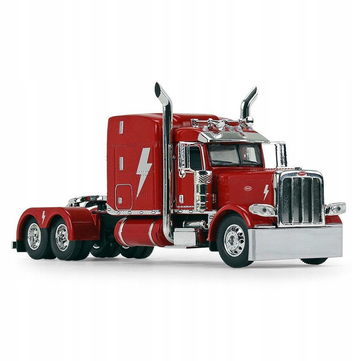 - Модель автомобиля Peterbilt® Model 389 в масштабе 1:64 имеет змеино-красную металлическую окраску и молнии AC/DC® на капоте и по бокам кабины.