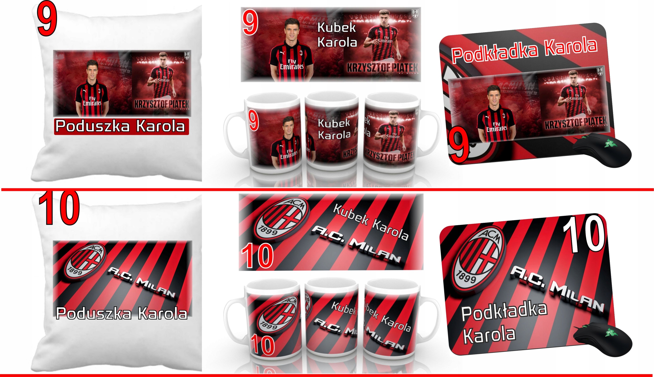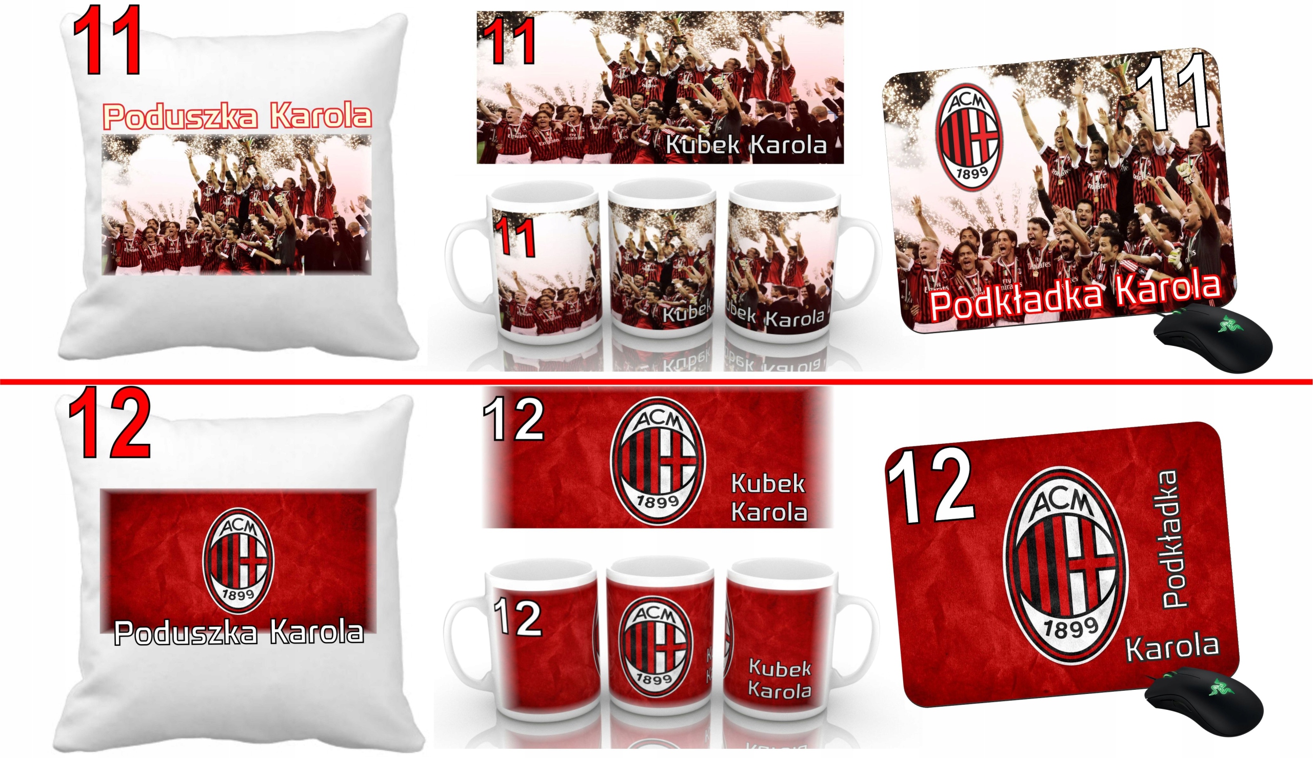 AC MILAN НАБОР ПОДУШКА + ЧАШКА + ШАЙБА + ИМЯ