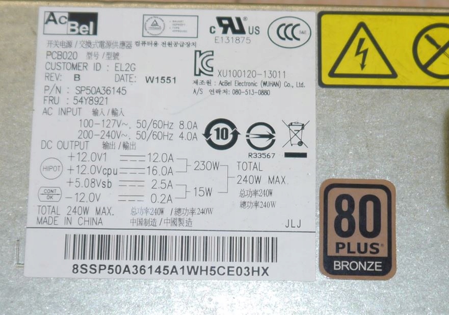 acbel PCB020 240W Lenovo M73 M82 M92 M92P SFF