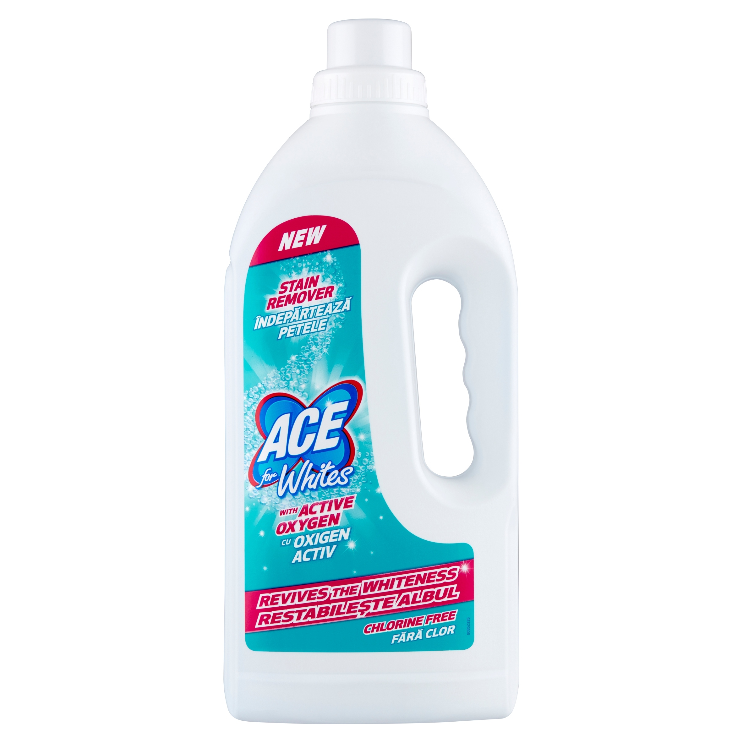Пятновыводитель Ace для белых тканей с активным кислородом оживляет белизну без хлора.