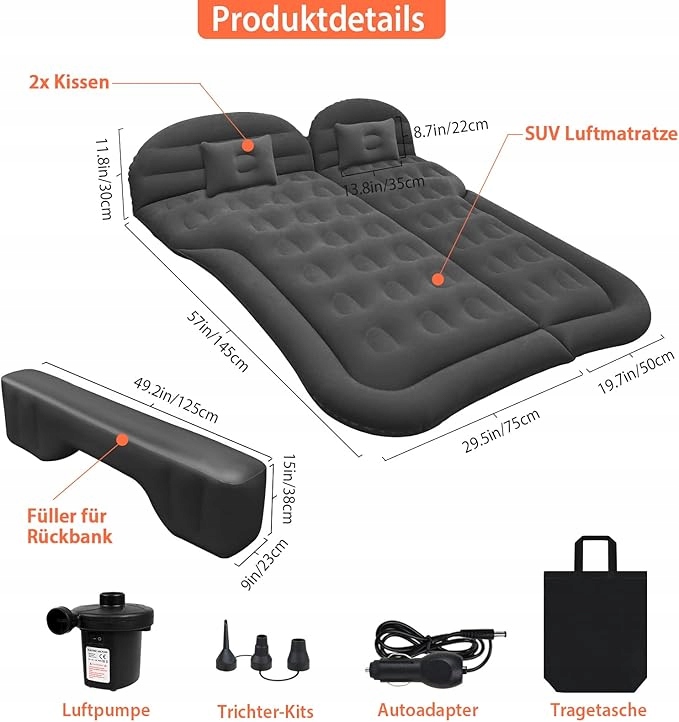 √ Надувной матрас SUV легко надувать: оснащен быстрозарядным электрическим матрасным насосом, вилкой постоянного тока 12 В, для подключения к автомобильной розетке, открытым выпускным клапаном, сжиманием и сдуванием, двухслойным воздушным соплом. Воздух может войти и надуться только быстро и легко.