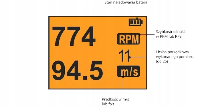 - Измерение начальной скорости в диапазоне [м/с]: от 30 до 400