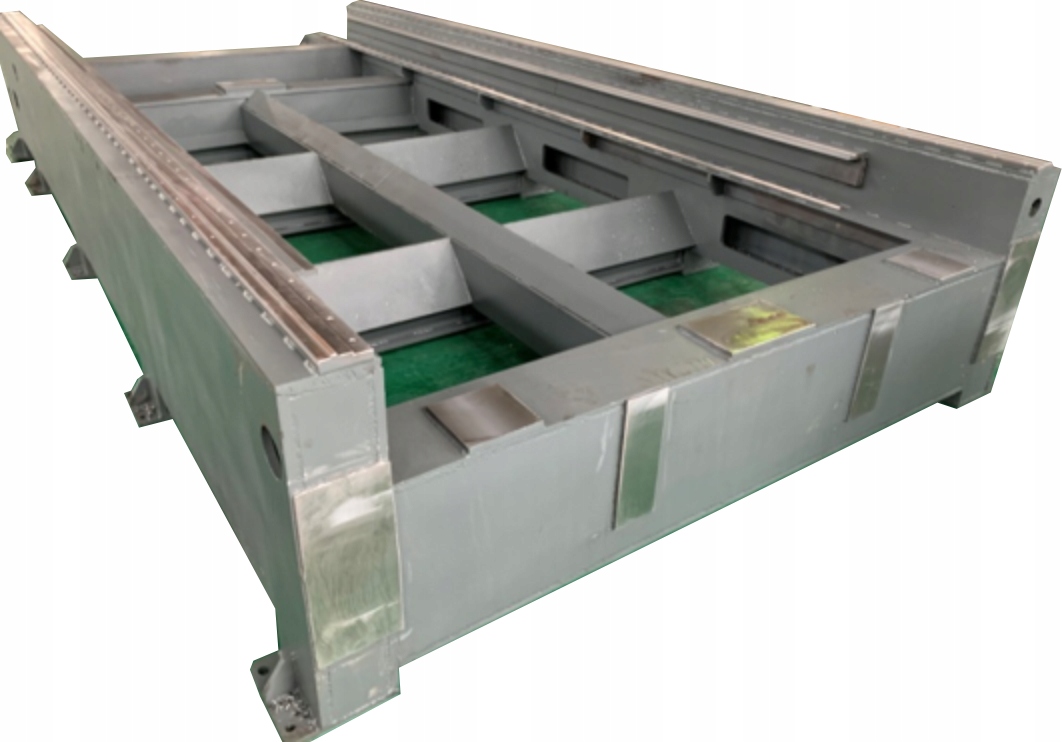 Очень прочная кровать из сварного листового металла. Изготовлен из углеродистой стали толщиной 12-40 мм. Листы разрезаются и свариваются. Кровать специально спроектирована таким образом, чтобы предотвратить ее выгорание мощными лазерами. Все это обрабатывается на многоосном обрабатывающем центре, поэтому все направляющие поверхности обрабатываются одновременно, чтобы обеспечить высокую точность. Материал станины твердый, устойчивый к износу и коррозии, что гарантирует долгий срок службы и отсутствие деформации не менее 20 лет.