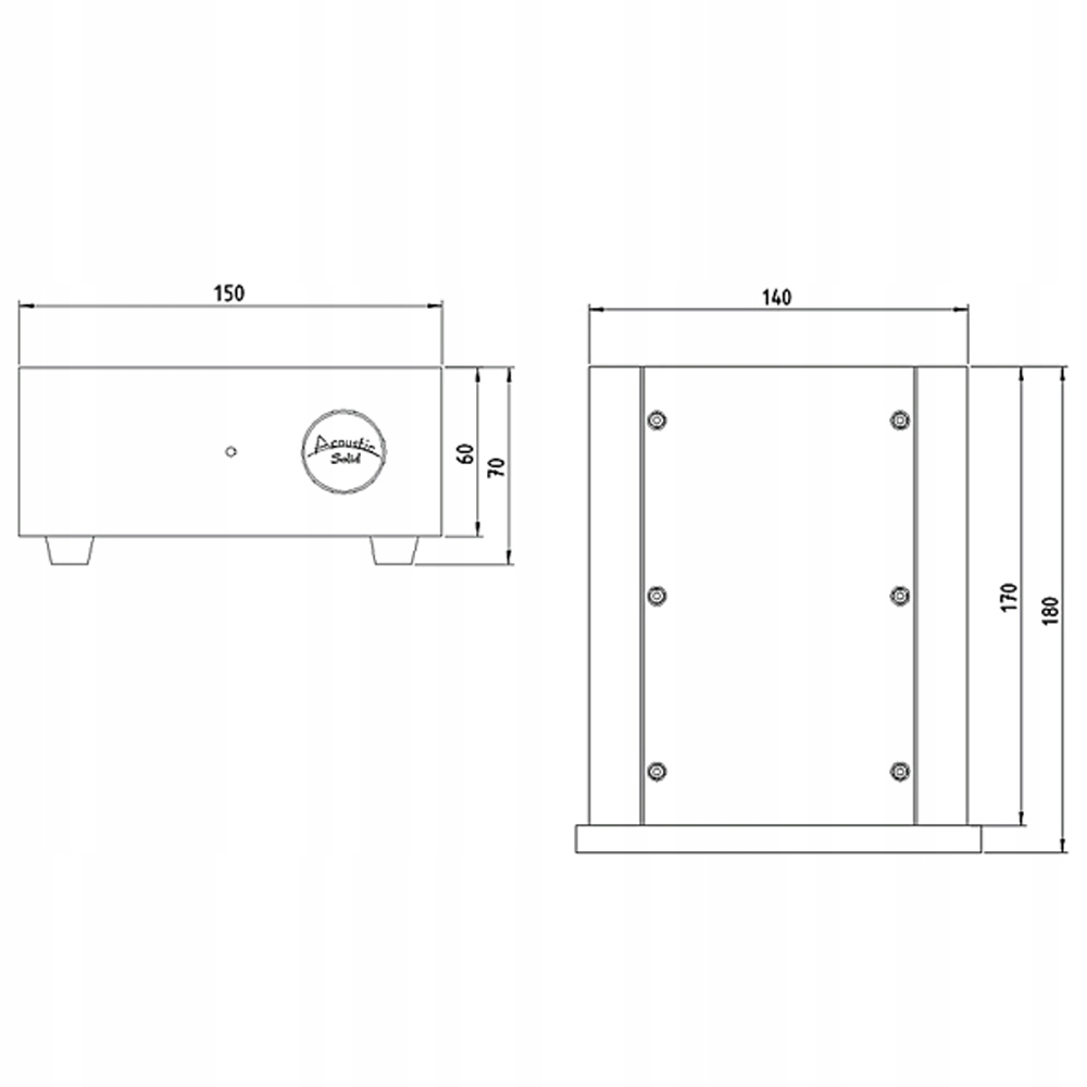 Очень жесткий корпус предусилителя Acoustic Solid, изготовленный из высококачественного материала, гарантирующий идеальное экранирование Фонокорректор для защиты сигнала от помех и искажений.