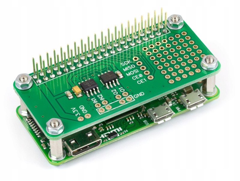 Модуль с высокоточным АЦП и ЦАП в виде накладки на разъемы GPIO Raspberry Pi. Он имеет 2 канала 12-битных аналоговых выходов и 2 канала 12-битных аналоговых входов. Обмен данными осуществляется через интерфейс SPI. На плате также имеется место для прототипирования. Работает с версией Raspberry A+/B+/2B/3B/3B+/Zero/Zero W.
