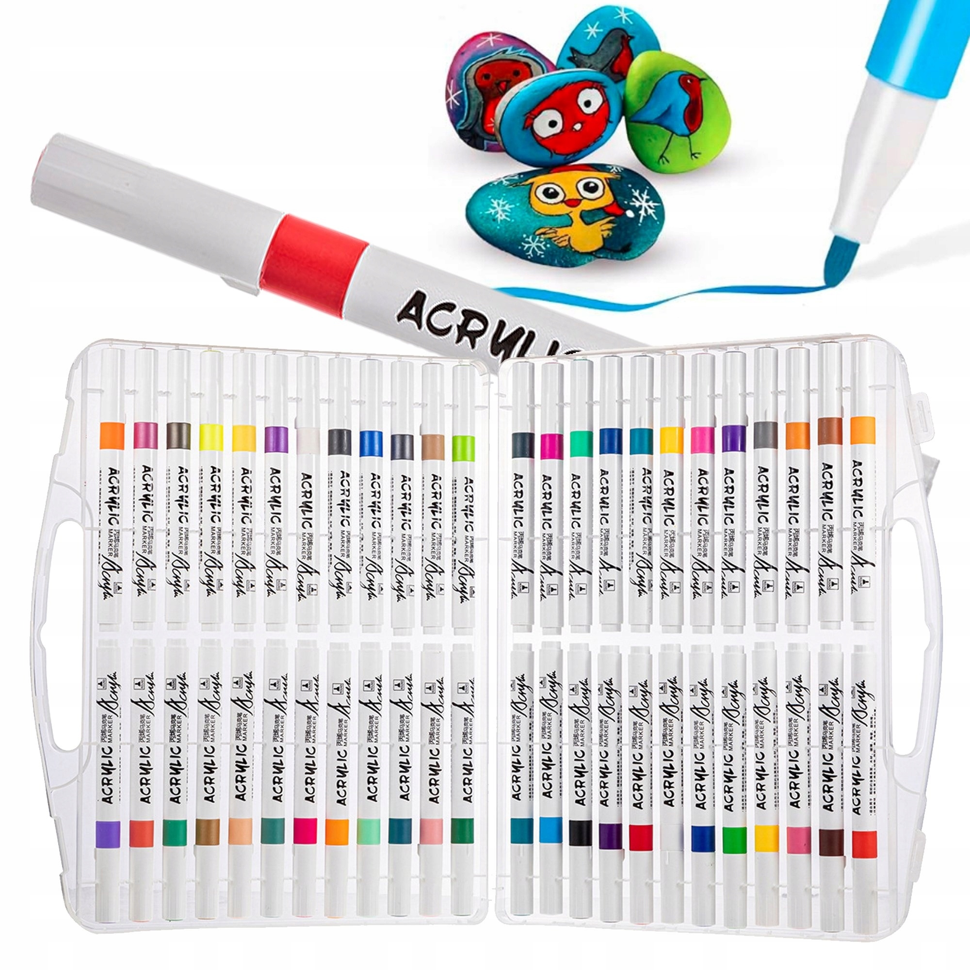 снова открыть творчество благодаря набору акриловых маркеров . Этот набор включает в себя 60 интенсивных цветов , которые идеально подходят для различных поверхностей, таких как бумага, дерево, стекло, металл и керамика. Каждый маркер оснащен двойным наконечником - тонким и круглым, что допускает точные детали и покрывает большие поверхности.