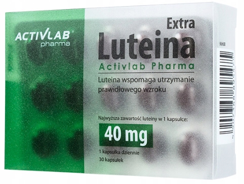 ACTIVLAB PHARMA LUTEINA EXTRA — пищевая добавка, содержащая натуральный кристаллический лютеин в самой высокой дозе, представленной на рынке – 40 мг. Подготовка дополнительно обогащен зеаксантином – веществом, улучшающим работу. орган зрения, защищая его от вредного воздействия радиации и против других неблагоприятных факторов окружающей среды. Лютеин в организме у человека он сосредоточен в макуле, которая является частью сетчатки. отвечает за остроту и центральное зрение. Человеческое тело не находится в способен синтезировать лютеин самостоятельно. Необходимо его достаточное количество в рационе. или принимать в виде добавок.