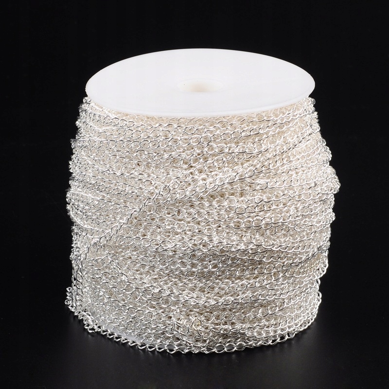 Łańcuszek Skręcany Żelazny, Niespawany Ogniwo Dzielone, Srebro, 5x3.5mm, 5m