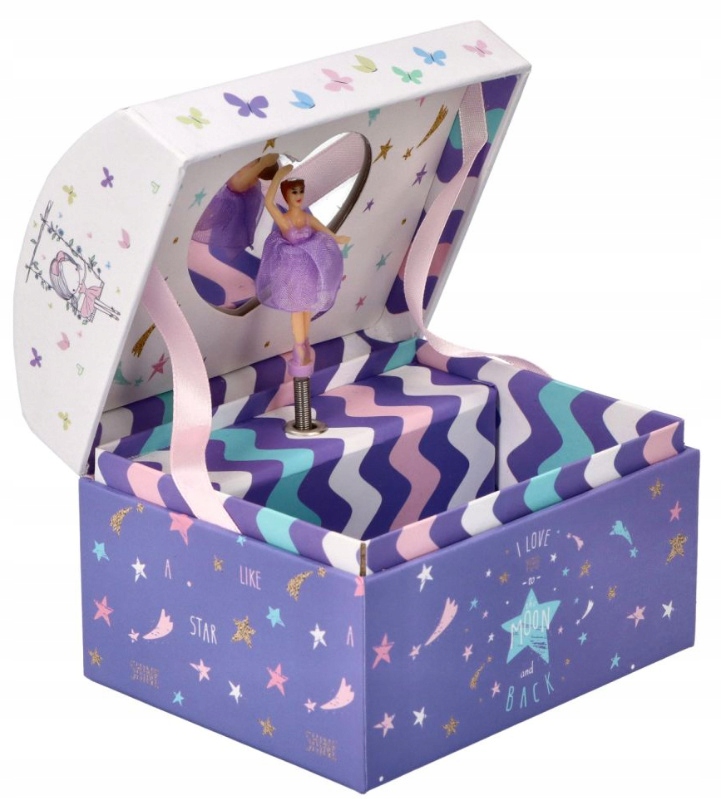 Красивая коробочка от Adam Toys порадует каждую маленькую леди, в которой она сможет хранить свои безделушки. На крышке музыкальной шкатулки изображены девочка и котенок, сидящие вместе на ветке. Музыкальная шкатулка имеет нежное парчовое оформление, цвета очень приятные и нежные, поэтому она наверняка понравится не только маленьким девочкам, но и постарше. Внутри находится прекрасная балерина, кружащаяся в ритме музыки «Для Элизы». На задней стенке шкатулки расположено зеркало в форме сердца. Музыкальная шкатулка не имеет ящиков и отделений, но внутри достаточно места для хранения мелких предметов. Механизм музыкальной шкатулки не требует использования батареек, все, что вам нужно сделать, это повернуть ручку сзади.