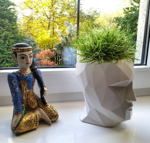 Привлекательный и декоративный вазон в форме головы.