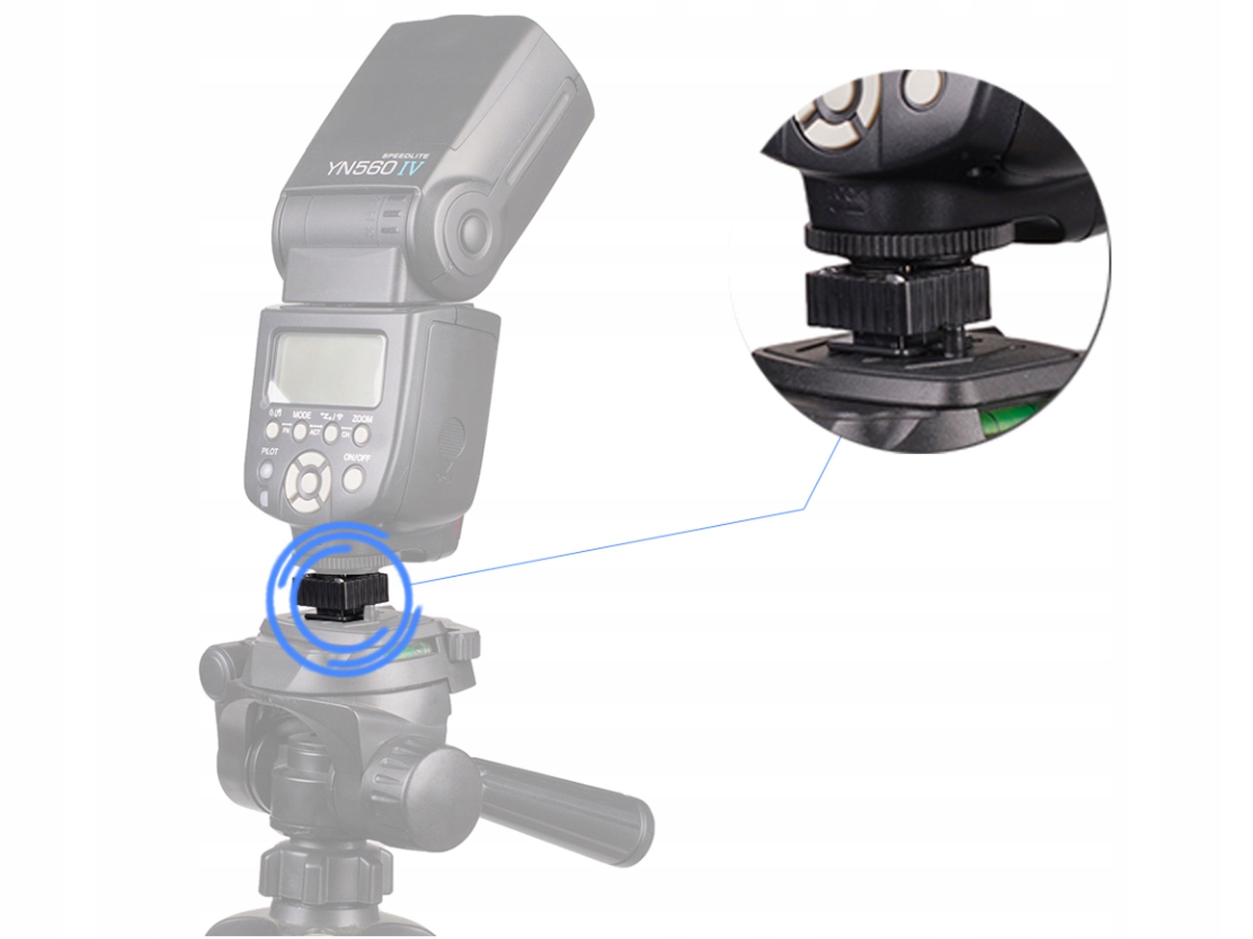 Адаптер предназначен для устройств с стандартным горячим башмаком ISO.