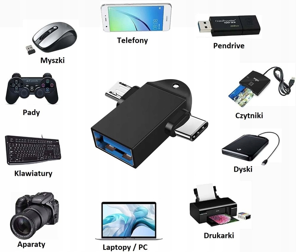 Адаптер позволяет подключать устройства с портом USB-C или Micro USB к устройствам с разъемом USB3.0, 2.0 и более ранних версий, например компьютеру, флэш-накопителю, ноутбуку, камере, видеокамере и т. д. Функция OTG позволяет напрямую передача данных между портативным устройством и USB-устройством без подключения к компьютеру.