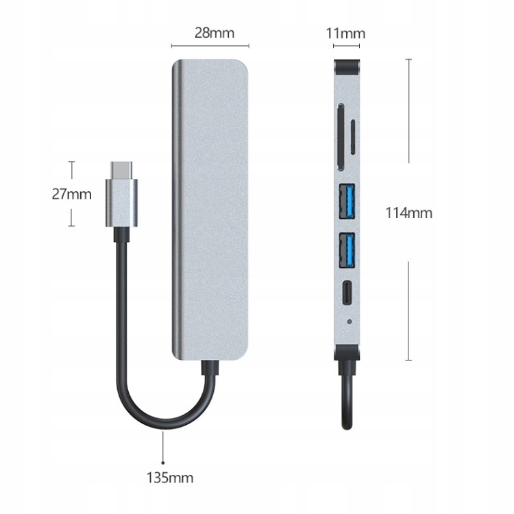 В связи с продолжающейся миниатюризацией оборудования все больше новых ноутбуков и ноутбуков имеют ограниченное количество портов. Благодаря адаптеру USB-C — USB/HDMI/USB-C 3.1/SD/TF к компьютеру можно подключить больше устройств. Он позволяет легко подключить ноутбук к телевизору, USB-накопителю или устройствам с USB-выходом.
