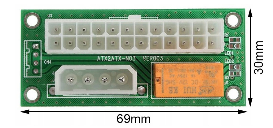 После запуска материнской платы напряжение подается на MOLEX разъем, с которого будет включен второй блок питания.