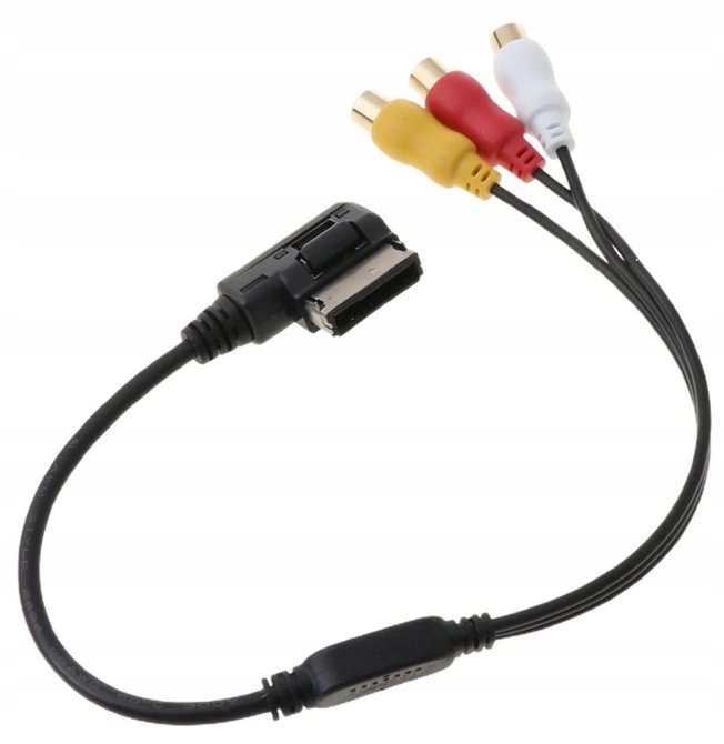 Кабель AMI MMI to RCA с разъемом для Audi, VW, Skoda и других автомобилей с разъемом, показанным на фото. Обеспечивает подключение аналоговых аудио- и видеоносителей.