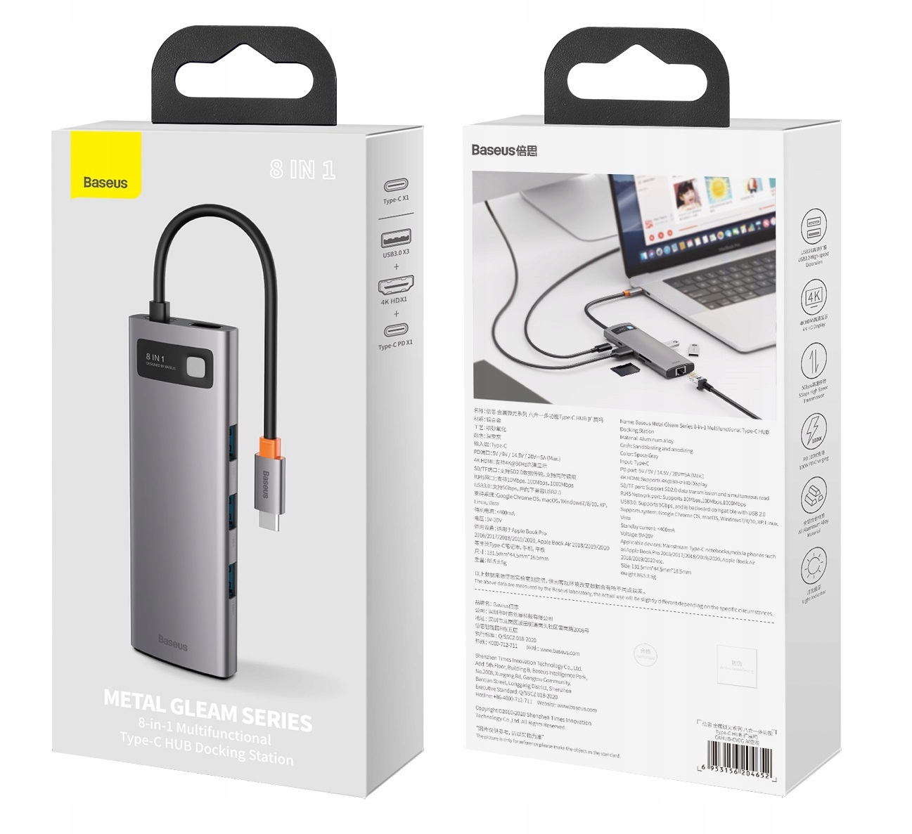 - Модель: Многофункциональная док-станция Type-C HUB серии Metal Gleam 8-в-1