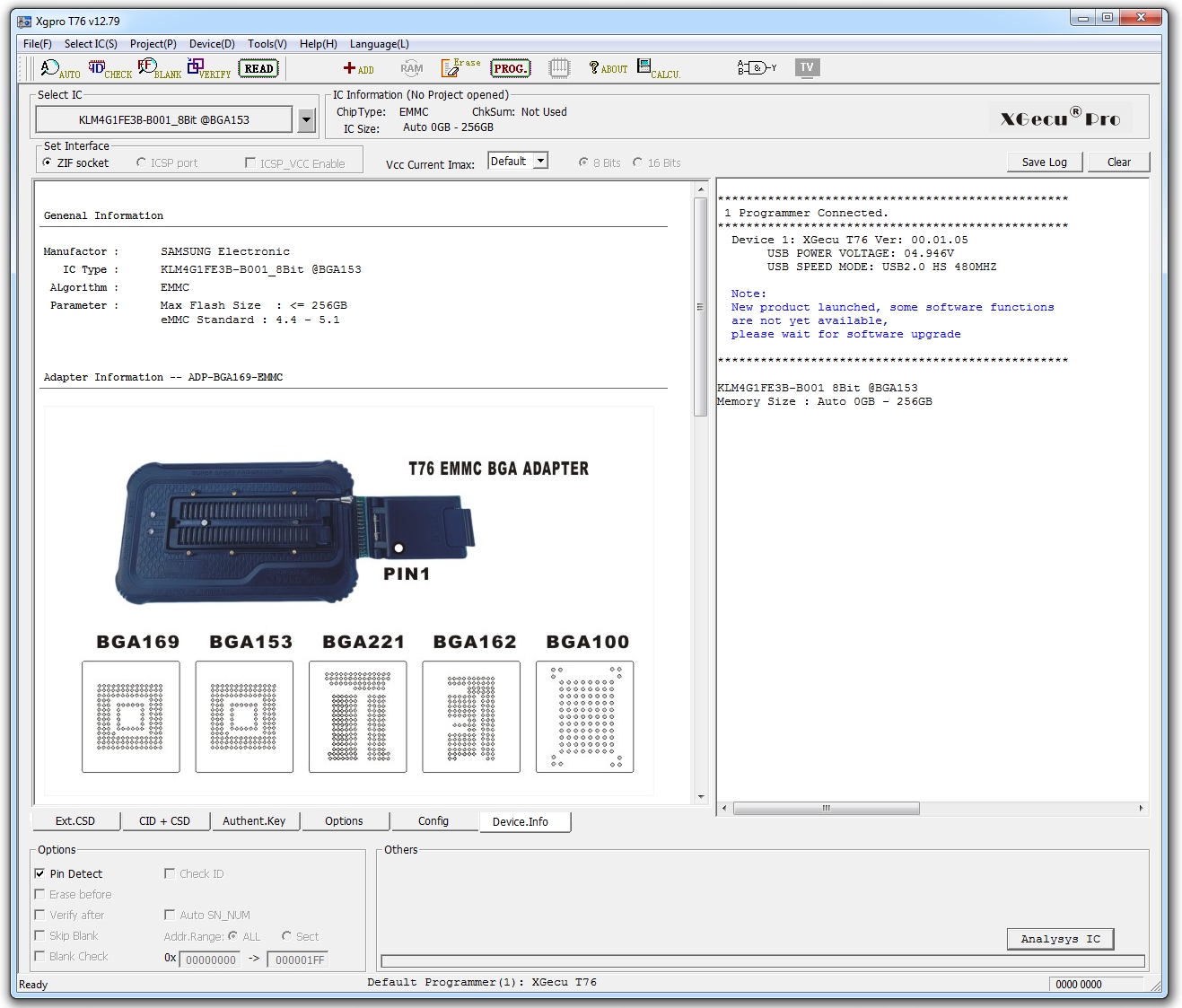 Маркировка Xgecu: T76 ADP-BGA169-EMMC