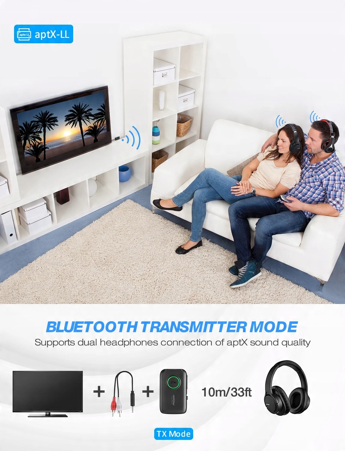 MPOW BH390 Bluetooth-передатчик 5.0 2 в 1 APTX/APTX-LL/APTX-HD Сервис с 3,5 мм/RCA для Home TV Audio House TV