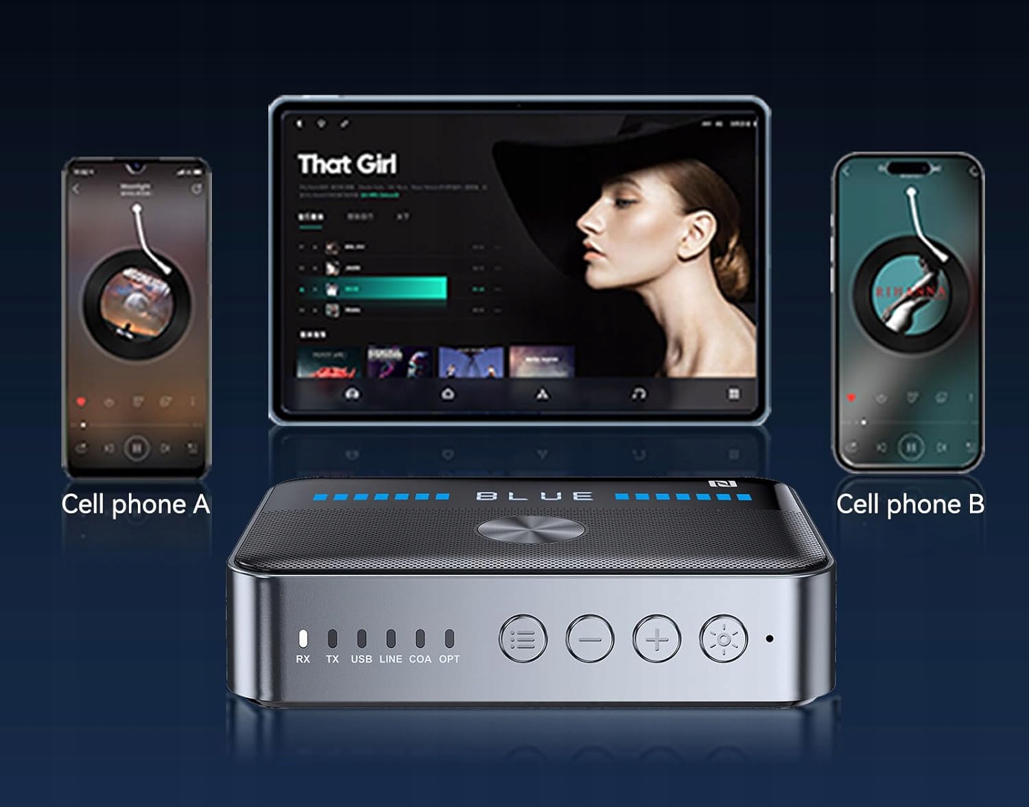 ★Дизайн «два в одном» — приемник Bluetooth (RX) и передатчик Bluetooth (TX), подходит для активных динамиков, усилителей, телевизоров, настольных компьютеров, проекторов, гарнитур Bluetooth и т. д.