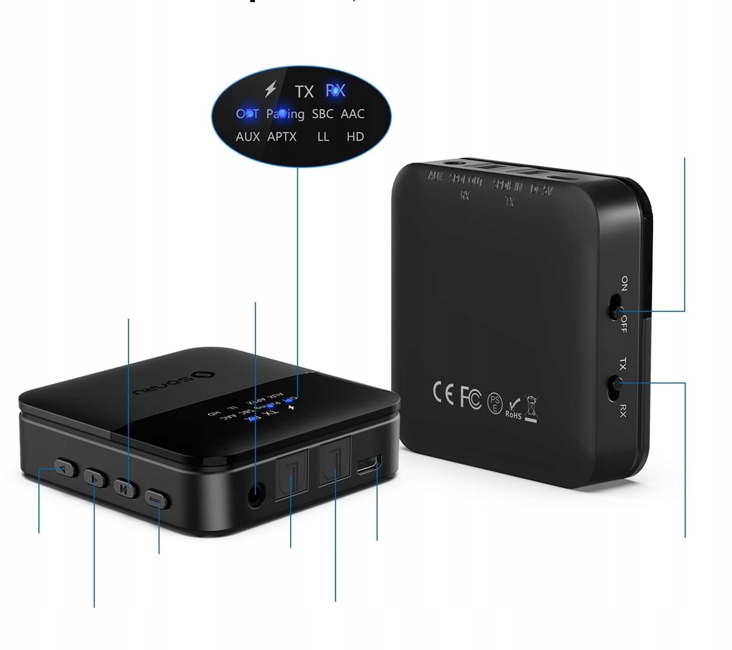 - Специальная функция: 2 в 1, передатчик Bluetooth и Bluetooth -приемник, APTX низкая задержка, APTX High Definition