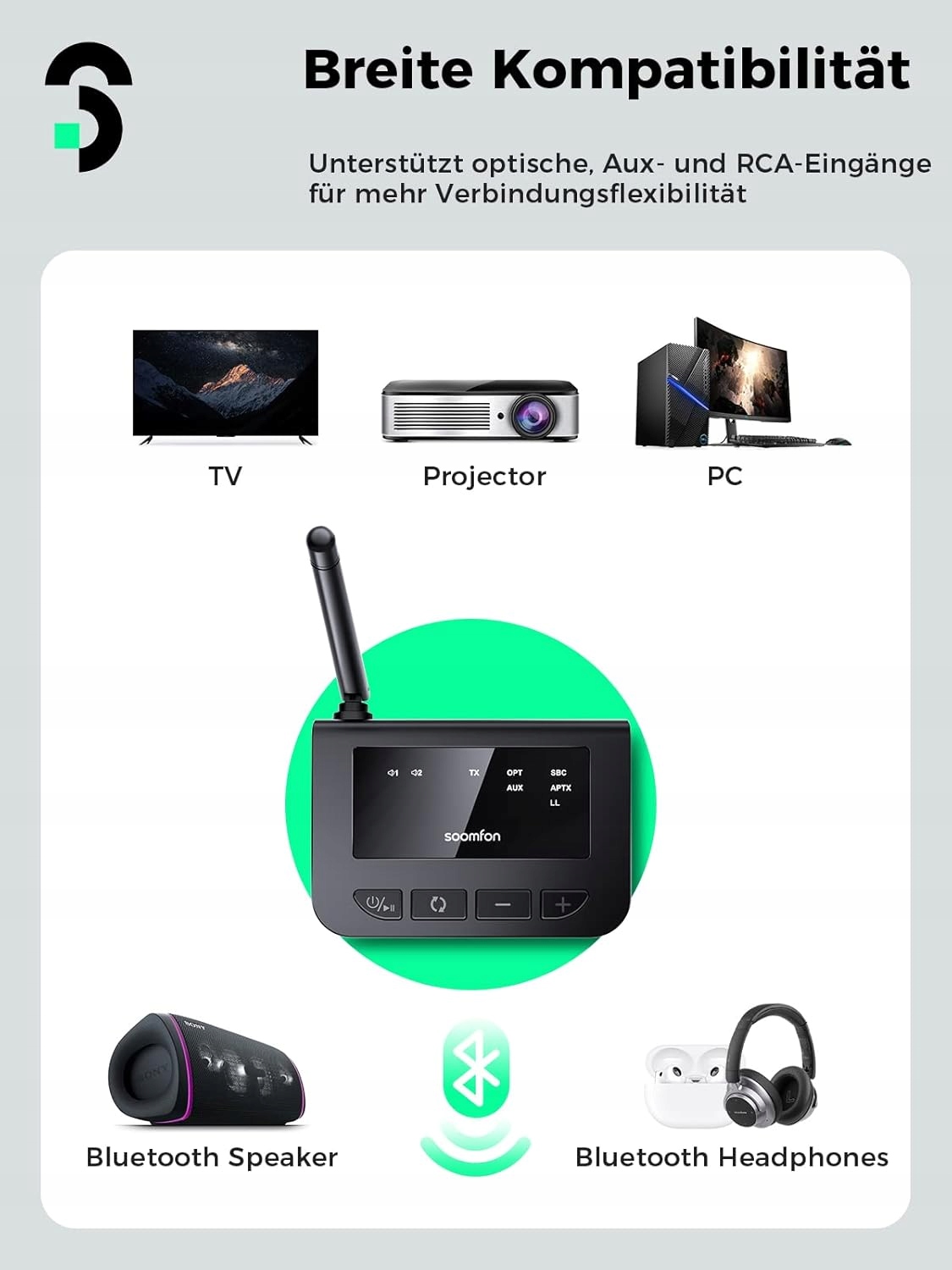 передатчик (TX) : отправьте звук с телевизора или компьютера в наушники Bluetooth.