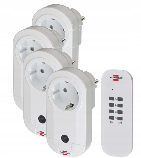 Комплект радиоуправления Brennenstuhl RC CE1 4001 (набор радиоуправляемых розеток на 4 направления для помещений, с ручным передатчиком и замком от детей) белый.