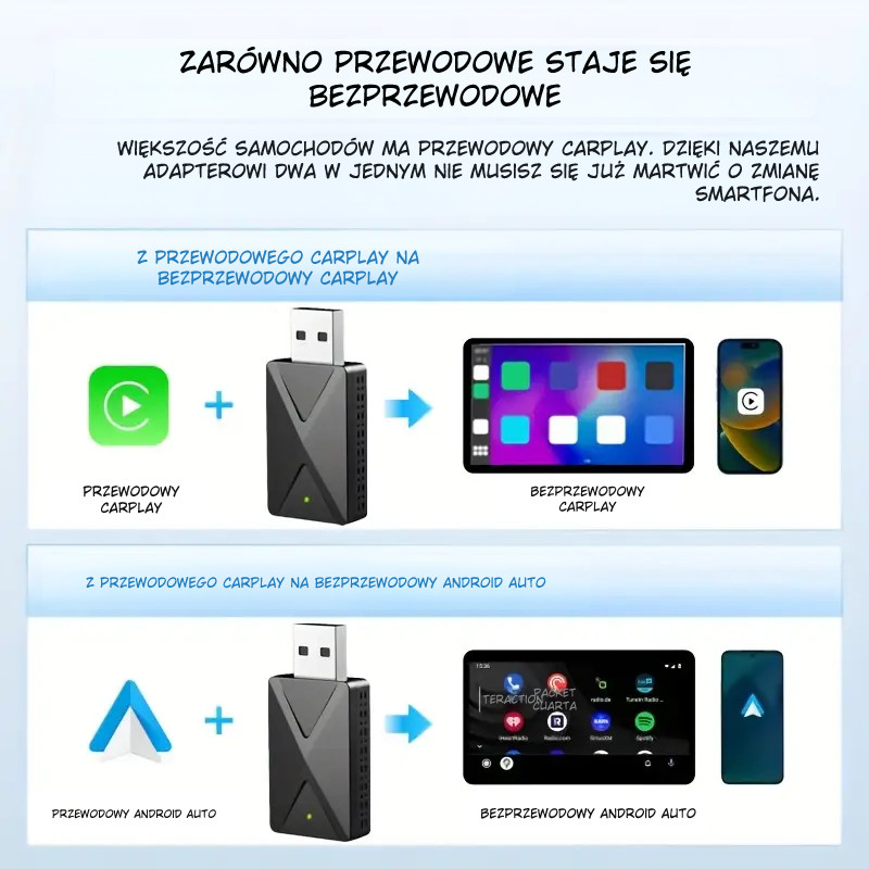 Беспроводной 2IN1 Адаптер для Apple CarPlay и Android Auto - бесплатно от кабелей! h1>