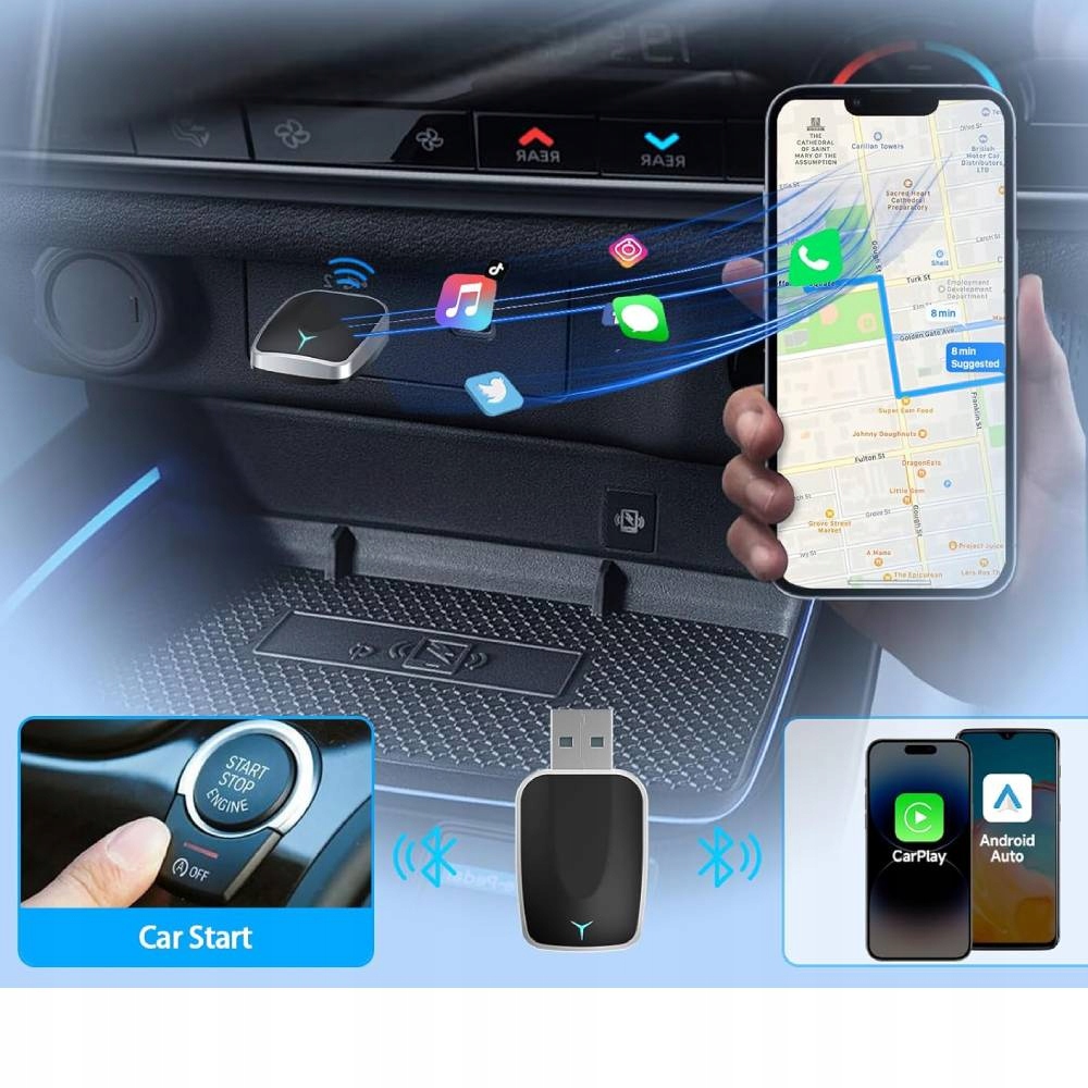 АДАПТЕР CARPLAY МОДУЛЬ ANDROID PRO АВТО БЕСПРОВОДНОЙ WIFI BLUETOOTH MINI