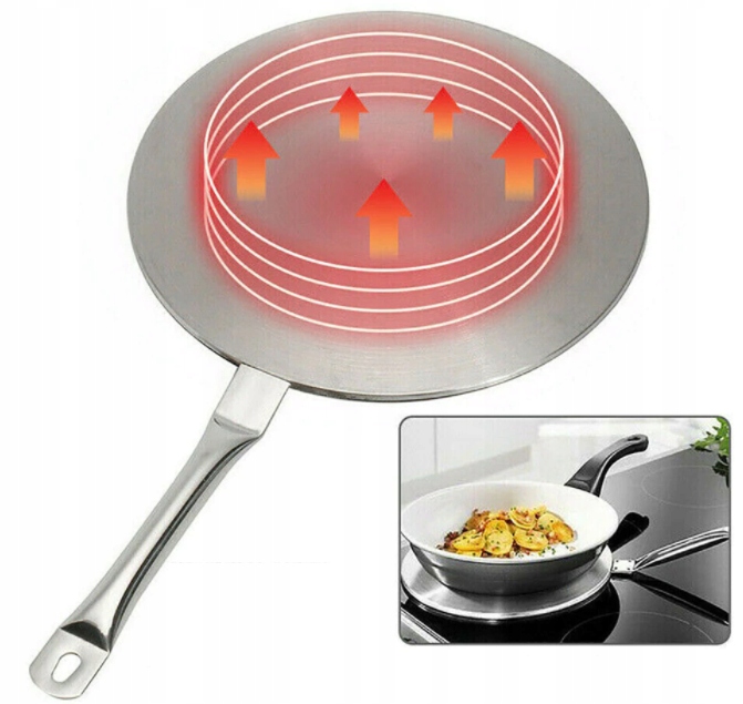 Стоит также отметить, что представленный адаптер для индукционной плиты варочная панель: - можно использовать со стальными, алюминиевыми, чугунными, железными, керамическими и даже стеклянными кастрюлями, - это решение обеспечивает заметную экономию энергии, времени и денег, которые в противном случае пришлось бы потратить на покупку нового комплекта посуды, - уход за ним прост и не требует использования специальных чистящих средств, - держатель-переходник поможет не только использовать изделие, но и легко переставлять его на индукционной плите.