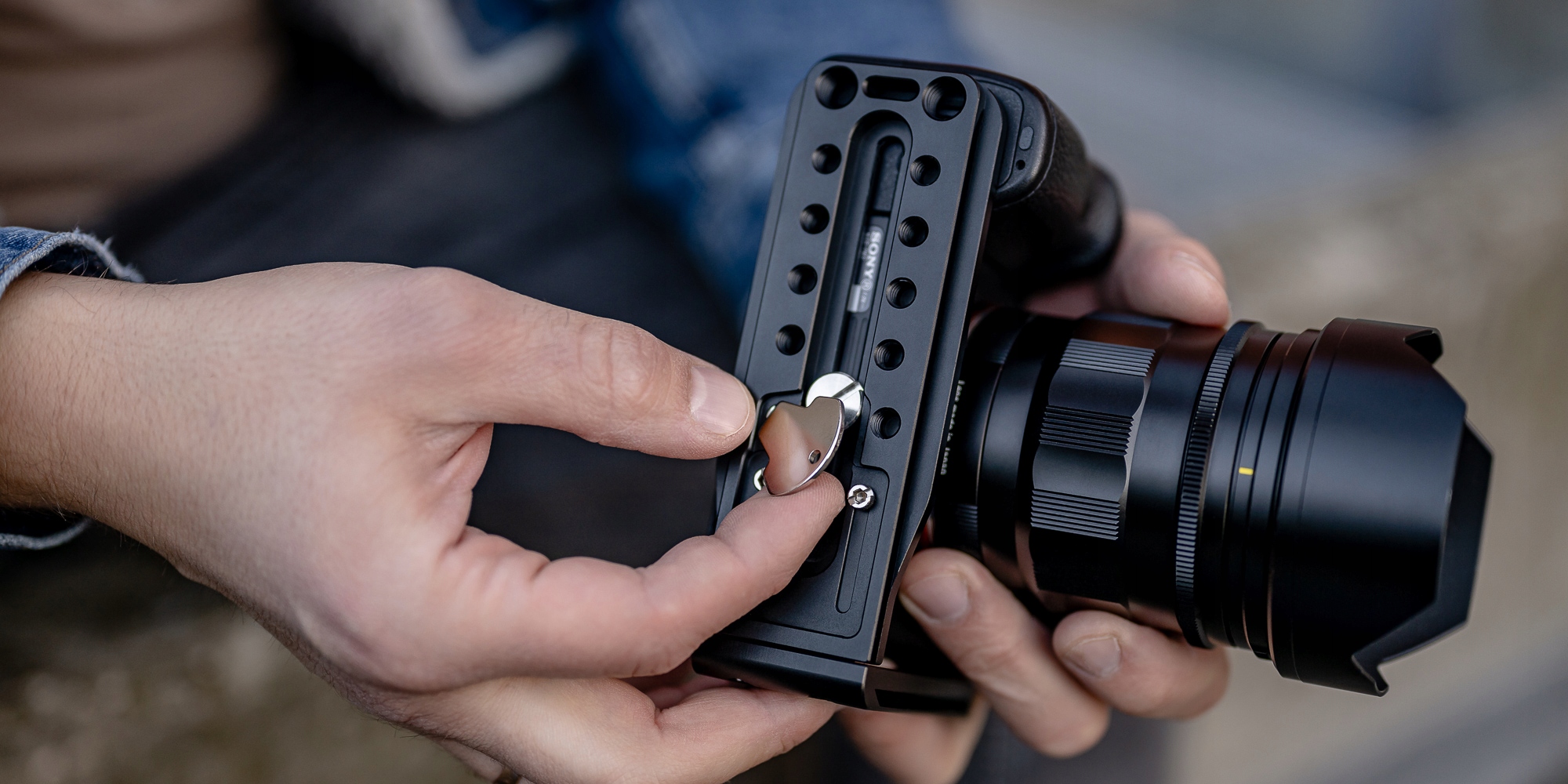 Fotopro QAL-L — адаптер с L-образным кронштейном, позволяющий быстро и удобно менять положение камеры с горизонтального на вертикальное. Это будет отличный выбор, если вы работаете со штативом, слайдером или устройствами управления движением. Продуманная конструкция адаптера обеспечивает удобный доступ к боковой части камеры, где часто располагаются порты или слот для карты памяти. Плата совместима со стандартом Arca-Swiss. Использование выдвижного элемента позволяет точно подогнать адаптер под размеры камеры. Аксессуар имеет целых 18 монтажных отверстий с резьбой 1/4. К ним можно подключить множество дополнительных устройств, в том числе держатели «волшебная рука», светодиодные лампы или просмотровые экраны.