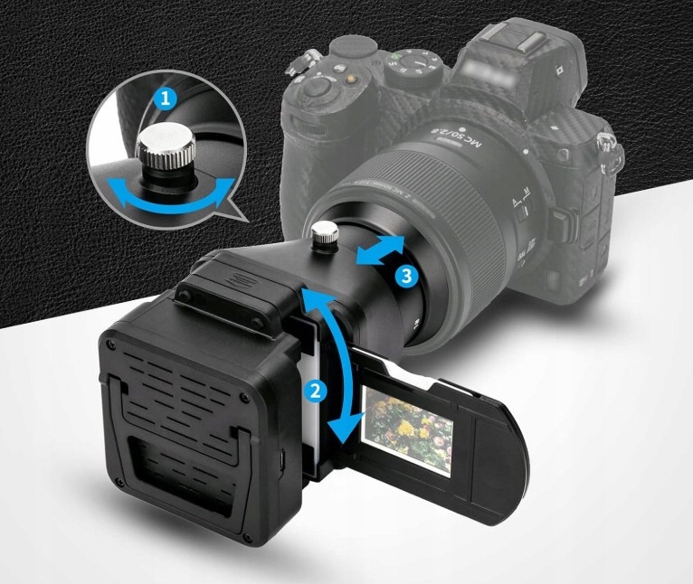 ✅ Полный набор аксессуаров - в комплект входят: держатель негатива, держатель слайдов, трубка, светодиодная лампа с 42 диодами и адаптеры для линз.