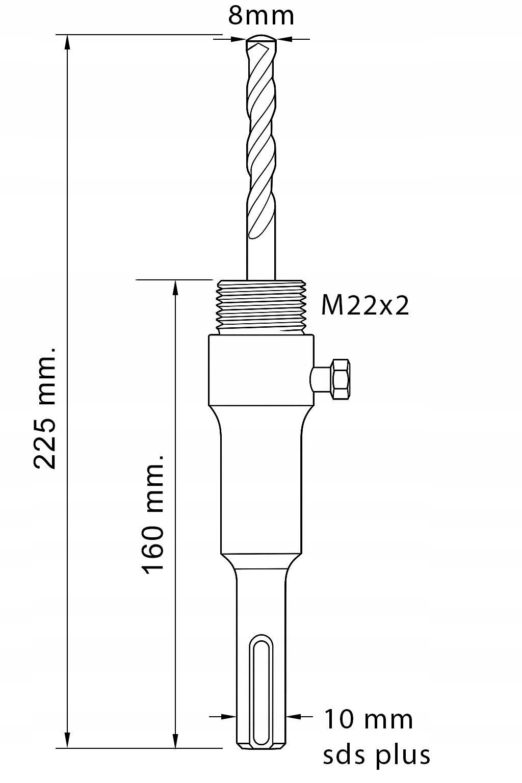 адаптер для расширения открытого червя 160 мм M22x2.0 SDS Plus кружево для бетона h1>