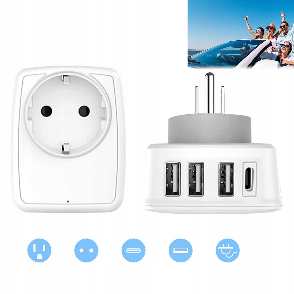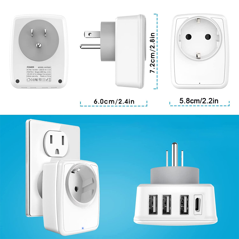 - Дорожный адаптер для США для всех зарядных устройств USB-A и USB-C и небольших европейских устройств, таких как iPhone, Samsung, iPad, Airpods, планшеты, фотоаппараты, ноутбуки, фены, дорожные утюги, бритвы и многое другое.