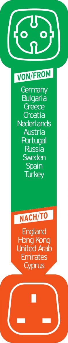 - Адаптер для подключения электроприборов с системой вилок с заземляющим контактом в странах с британской системой вилок (обратите внимание, что иногда в разных странах существует несколько систем вилок, и Brennenstuhl не гарантирует, что дорожная вилка подходит для всех систем вилок в одной стране).