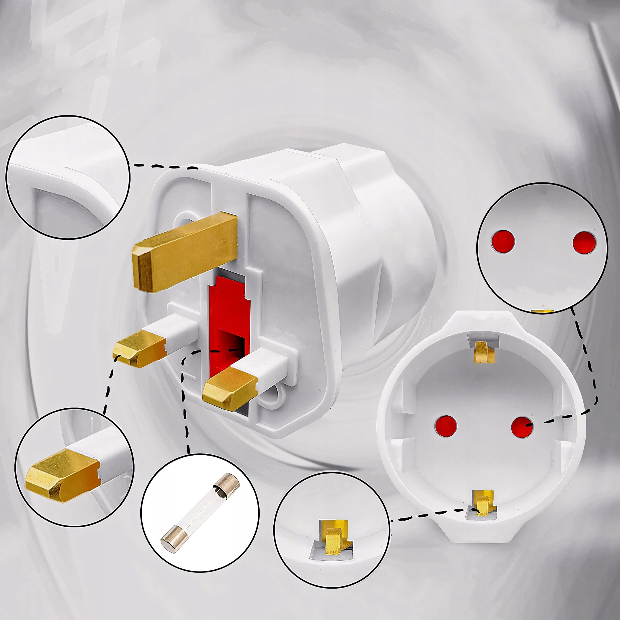 Адаптер путешествий является надежным решением для подключения польских плагинов в Великобритании и других странах. Сплошная конструкция, соблюдение стандартов CE и встроенная гарантия предохранителя и универсальное использование.