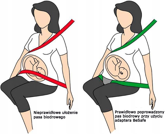 При использовании адаптера для беременных BeSafe поясной ремень безопасности перемещается из живота и будущего ребенка в подходящее место. Это не только помогает избежать дискомфорта будущей маме, но и исключает риск неправильного положения поясного ремня безопасности во время движения.