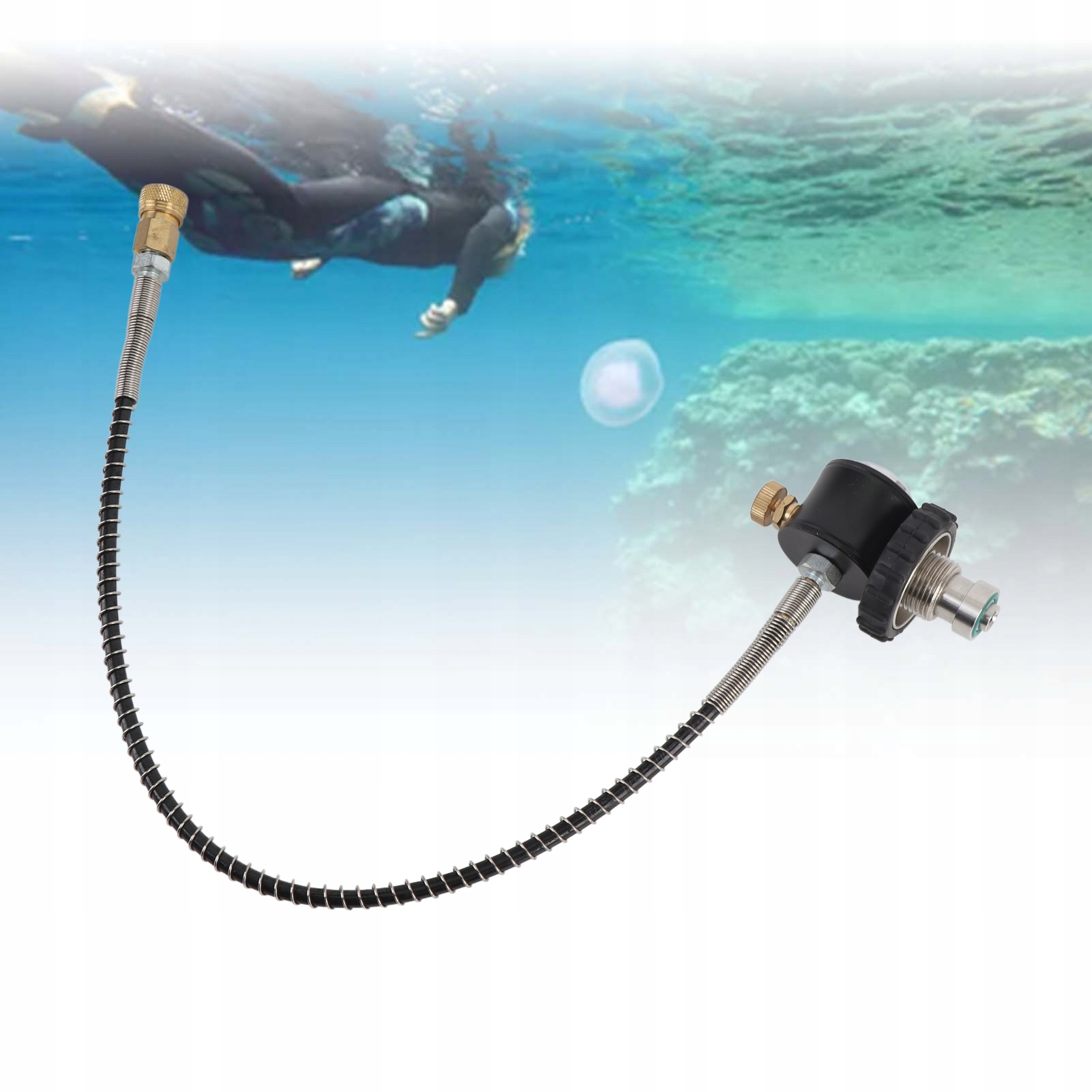 5. Многофункциональная переходная трубка: адаптер, оснащенный многофункциональной переходной трубкой, удобен для различных сценариев, включая надувание при дайвинге, обеспечивая простоту и удобство.