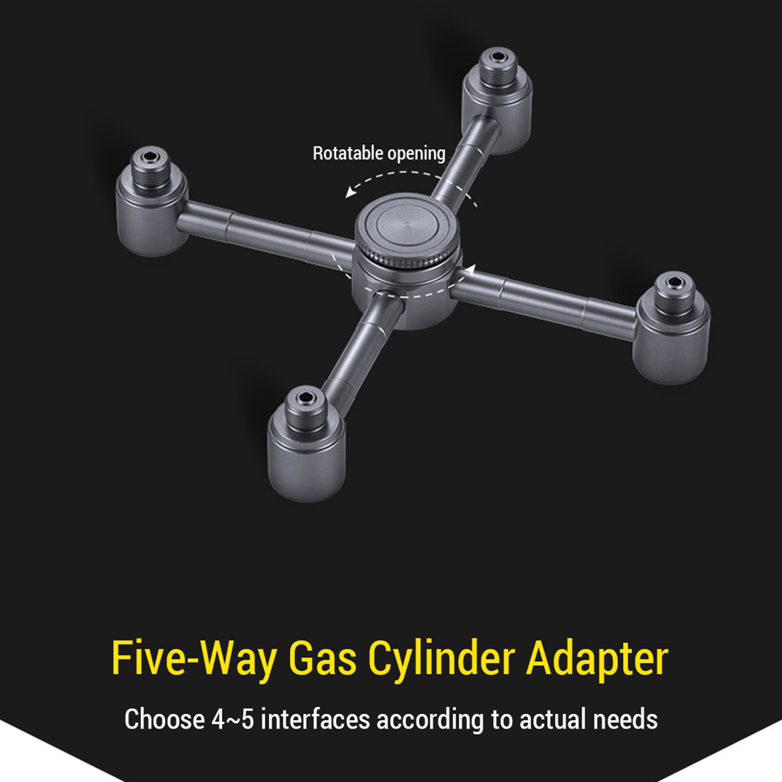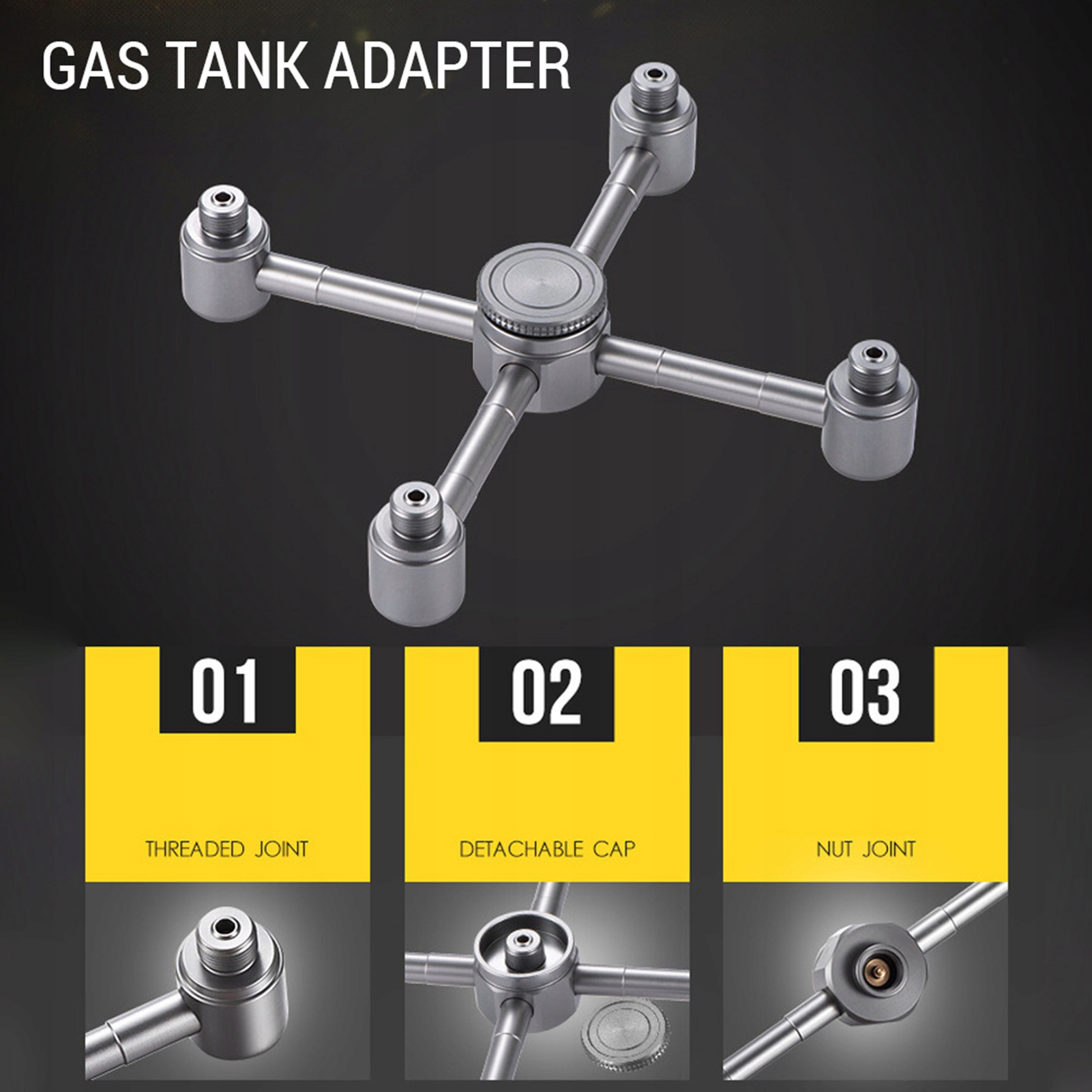 - Этот газовый адаптер изготовлен из алюминиевого сплава и имеет продуманную конструкцию, которая позволяет превратить один интерфейс газового баллона в пять, подходит для печей и уличных ламп, портативен и эффективен, безопасен и надежен.