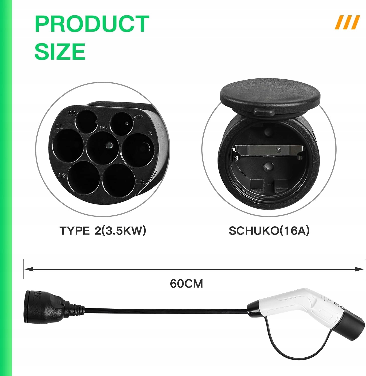 Adapter EV Expert od typu 2 (ładowarka) do typu 1 (samochód) - 32A - 0,5 m